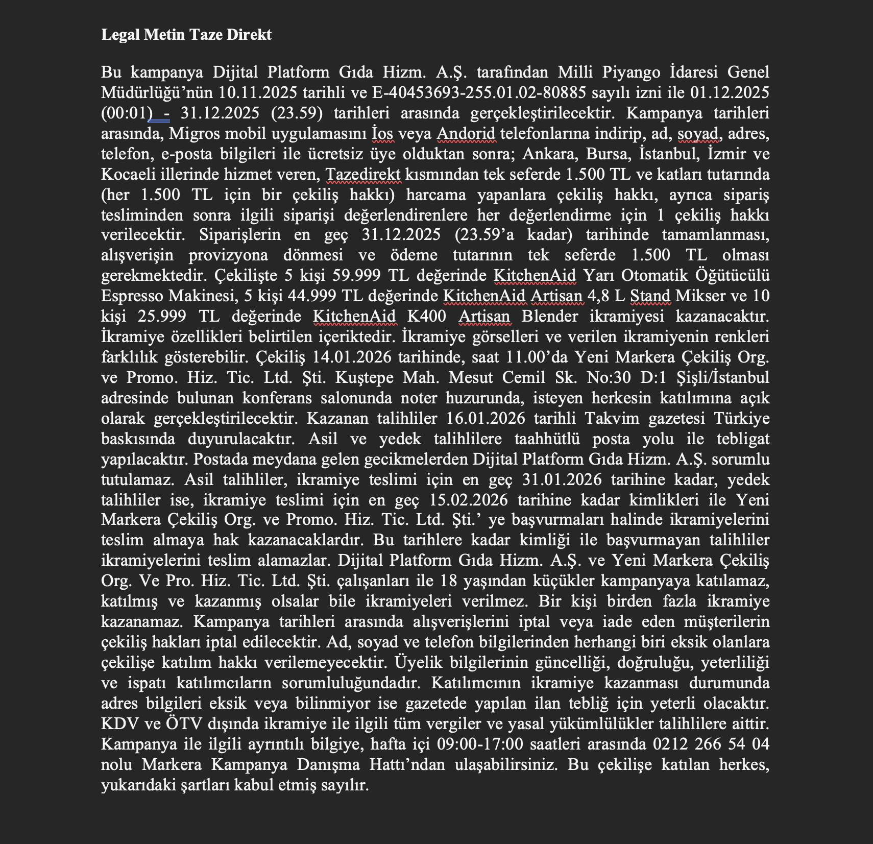 Tazedirekt'ten Büyük Yılbaşı Çekilişi (01.12.2025-31.12.2025)