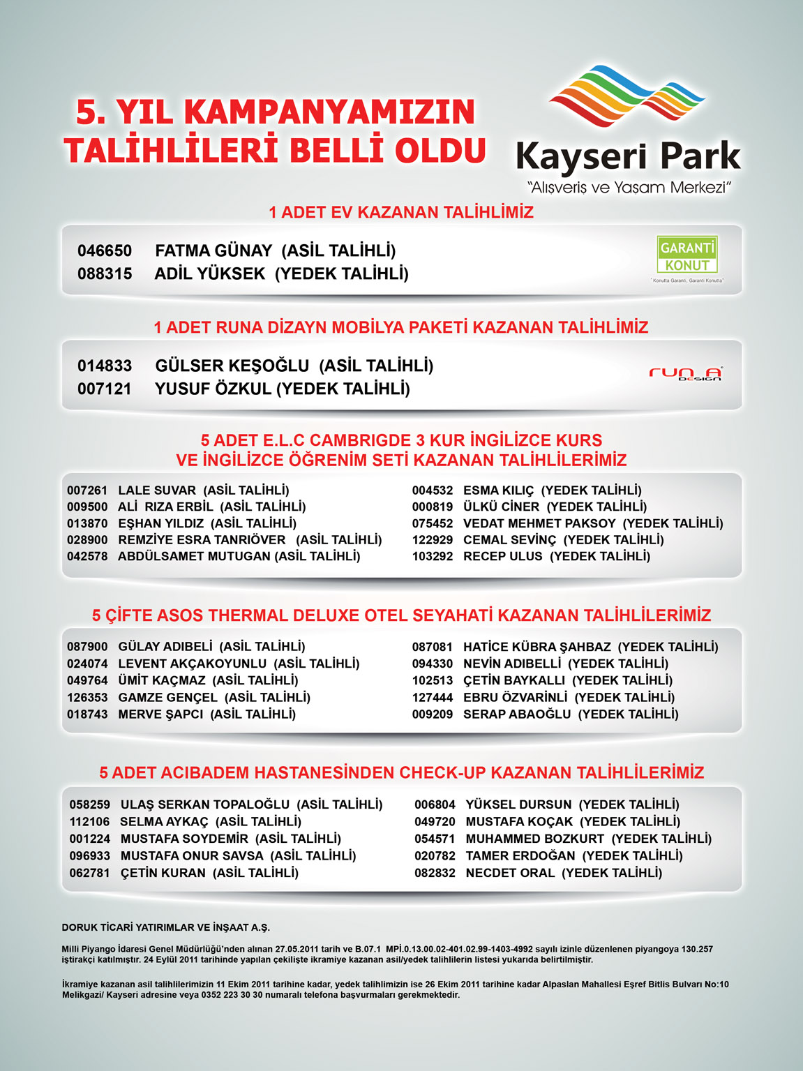 Kayseri'nin ve Orta Anadolu'nun ilk ve en büyük alışveriş merkezi olan Kayseri Park Alışveriş ve Yaşam Merkezi, dördüncü yaşını dört dörtlük bir kampanya ile kutluyor. “4. Yaşında Kayseri Park'tan Dört Başı Mamur Kampanya” adını taşıyan etkinlik kapsamında Kayseri Park'ta bulunan mağazalardan 110 TL ve üzeri alışveriş yapan herkes dayalı döşeli ev kazanma şansına sahip olacak. 1 Haziran'da başlayan kampanya 31 Ağustos'ta sona erecek.