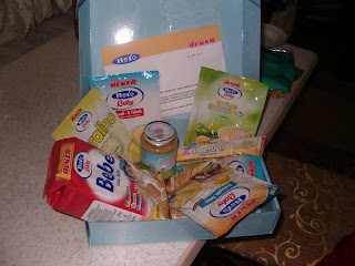 arkadaşlar banada bugün geldi numuneler güzel bir kutuda geliyo numune kargo poşetinde değil içinde elma ayva meyve püresi (işteyim tam abakamadım kabataşlak söyleyeceğim)3-4 poşet organik mama bebek bisküvisi gayet güzel bir numune paketi